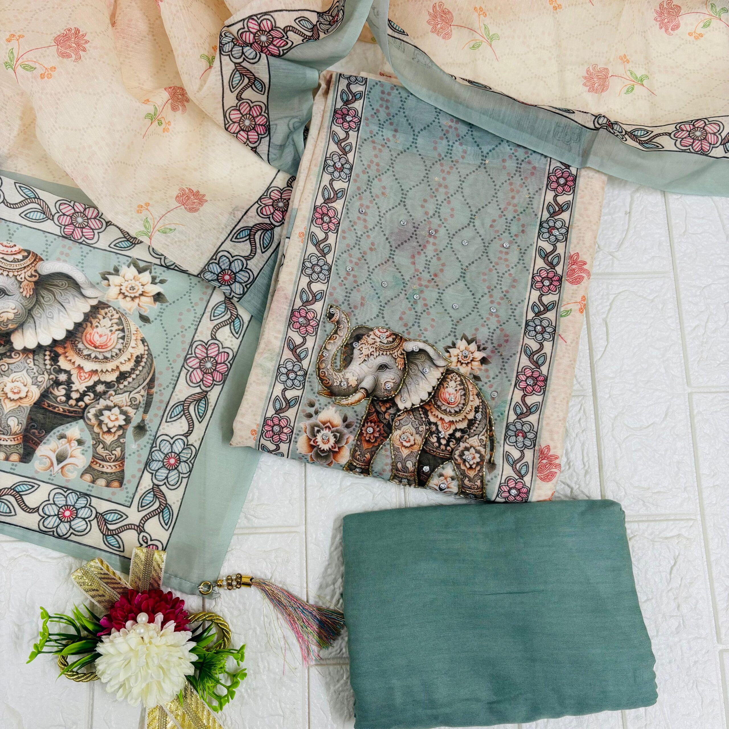Elephant dreams on soft pastels 🦋✨ Delicate prints, floral details & pretty tassels — perfect to add a touch of whimsy to your look