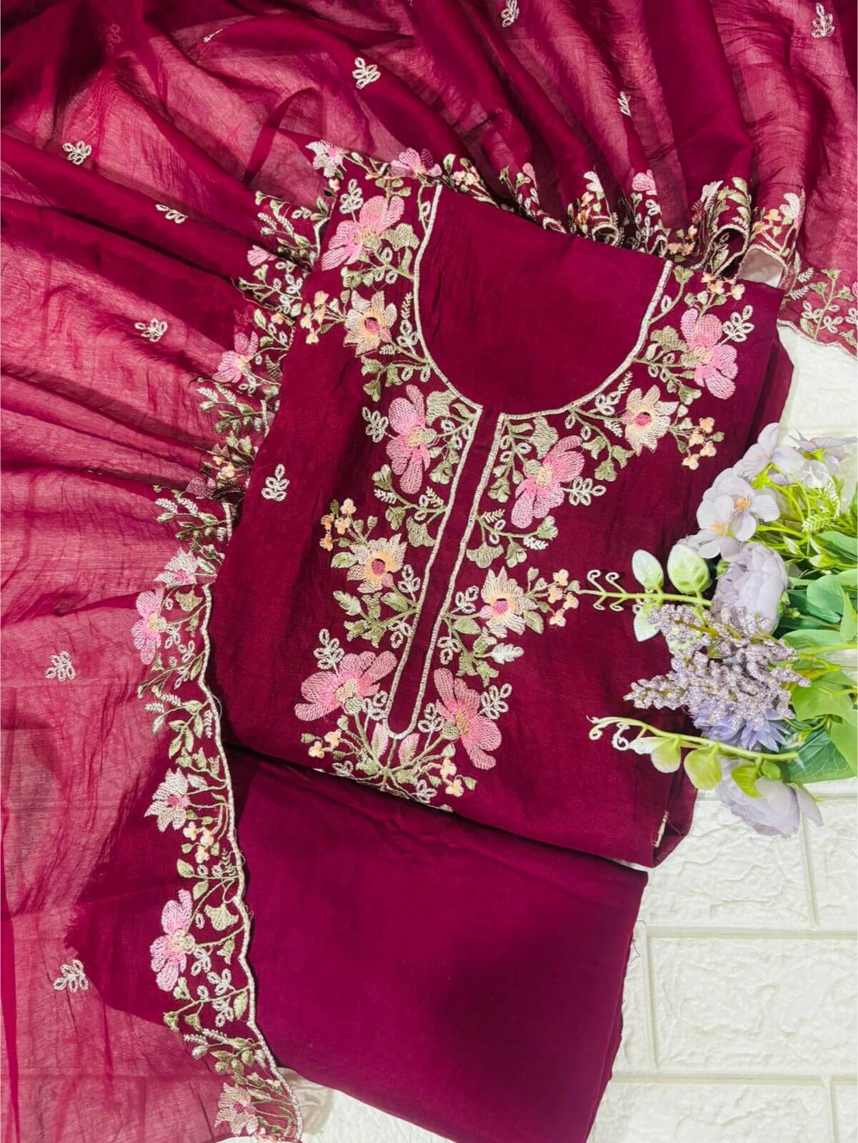 Graceful suit set adorned with delicate floral embroidery in soft pastel tones. Paired with a lightweight dupatta featuring elegant borders, this outfit offers a perfect blend of sophistication and comfort for festive and everyday wear.